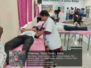 On 15th July 2025, the IQAC and NSS unit of our college organized a Blood Donation Camp on the college campus to commemorate the 123rd Birth Anniversary of Perunthalaivar Kamarajar, in collaboration with Lions Blood Bank. The event was graced by the presence of our respected Chairman, Chev. Dr. N.R. Dhanapalan, Secretary, Mr. N.R.D. Prem Kumar, and Joint Secretary, Dr. P.E.R. Premchand, whose guidance and encouragement elevated the spirit of the occasion. Students participated enthusiastically and came forward voluntarily to donate blood. As a gesture of appreciation, each donor was presented with a certificate of recognition. The camp successfully collected 68 units of blood, contributing significantly to the community’s healthcare needs. This initiative stands as a fitting tribute to the legacy of Perunthalaivar Kamarajar, reflecting his values of service, compassion, and commitment to the welfare of society.