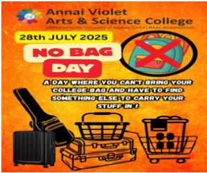 “No Bag Day” was a creative initiative organized by the Fine Arts Club on Monday, 28th July 2025. The students were encouraged to leave their regular school bags at home and carry their books and supplies using alternative, imaginative means such as cardboard boxes, baskets, laundry bags, tiffin carriers, shopping totes, or even pressure cookers. The goal was to foster creativity, innovation, and a sense of fun while emphasizing that learning can take place beyond traditional norms. The event was designed to create a lively and stress-free atmosphere in the classroom, allowing students to enjoy the learning process in a unique and engaging way.