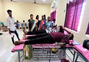 On 15th July 2025, the Chepauk Lions Club, Chennai, in collaboration with the NSS Unit of Annai Violet Arts and Science College, cordially organized a Blood Donation Camp on the college campus to commemorate the 123rd birth anniversary of Perunthalaivar Kamarajar, a great visionary and staunch advocate for education and public welfare.