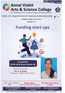 The IQAC, IIC and Department of Corporate Secretaryship jointly organized a seminar on “Funding Your Startup: Opportunities and Challenges” with Mrs. V. Suprajah, Credit Officer at Union Bank, as the resource person. The Objective of the seminar is to enable the students to understand the opportunities and challenges that a entrepreneur come across in the phase of funding. The session commenced with an overview of India’s startup ecosystem, followed by insights into the private funding landscape, current funding trends, emerging sunrise sectors, and the gap between investor expectations and market realities. Mrs. Supraja also emphasized legal and compliance challenges, strategic funding options, and key national initiatives supporting startups. A comparative analysis of major government schemes—PMEGP (Prime Minister’s Employment Generation Programme), UYEGP (Unemployed Youth Employment Generation Programme), and NEEDS (New Entrepreneur-cum-Enterprise Development Scheme)—was also presented. The seminar concluded with an engaging doubt-clearing session, effectively addressing participants’ queries. Students gained knowledge on various funding opportunities and schemes from national and state level for startups.