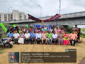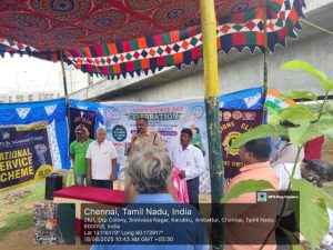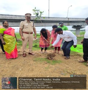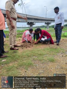 The highlight of the event was the tree planting activity, conducted at Chennai Korattur Lake West Area (under Pattaravakkam Railway Bridge). The Chief Guest, along with students and faculty members, planted saplings in the area, marking a significant step towards environmental conservation and the restoration of local green spaces.