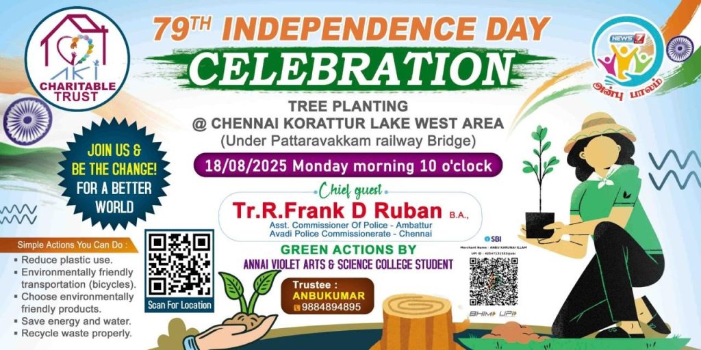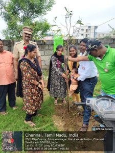 The NSS unit of Annai Violet Arts and Science College, in association with Arivu Karunai Illam Charitable Trust, organized an Extension Activity – Tree Planting Programme on 18th August 2025 to celebrate the 79th Independence Day. The initiative aimed to promote environmental awareness and encourage students to take meaningful steps towards building a greener and more sustainable future.The Department of Biochemistry played an active role in this eco-conscious effort, with 50 enthusiastic students from the department participating in the programme.The event was graced by the presence of Tr. R. Frank D. Ruban, B.A., Assistant Commissioner of Police – Ambattur, Avadi Police Commissionerate, Chennai, who served as the Chief Guest. In his insightful address, he emphasized the importance of adopting simple and effective habits to protect our environment. His key suggestions included: